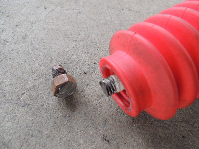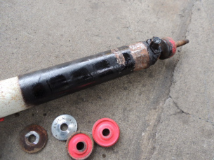 こんにちは、M川です。ディフェンダーのショック交換です。 これも融雪剤の影響か?マウントのナットは完全に固着していて サンダーでカットしました。