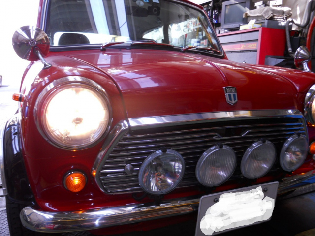 こんにちは三橋です。 先月ご紹介しましたLEDのヘッドランプ。 お得意様のMiniにも付けました。 やはりこの色の方が似合いますね。