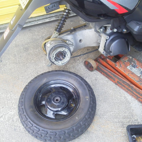 こんにちは、M川です。ヤマハBWSのタイヤ交換です。 ついでなのでバルブ(チューブレス)も新しいのに変えます。