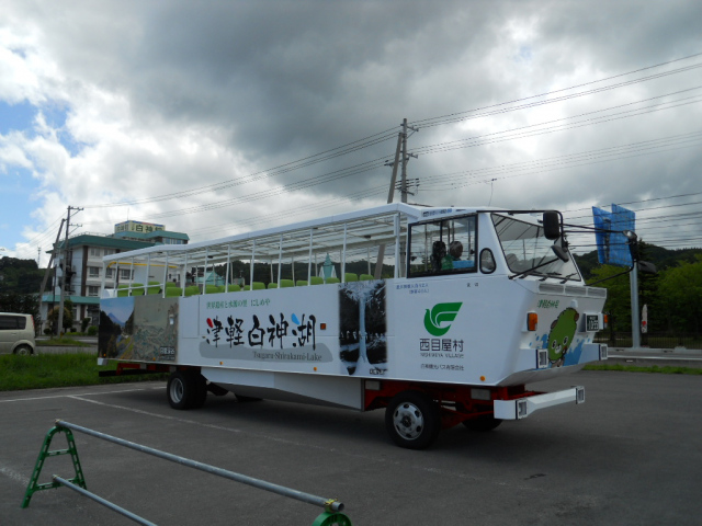 こんにちは三橋です。 ツーリングの時に見かけました。 水陸両用のバス! 一度は乗ってみたいですね~ 要予約だそうです。