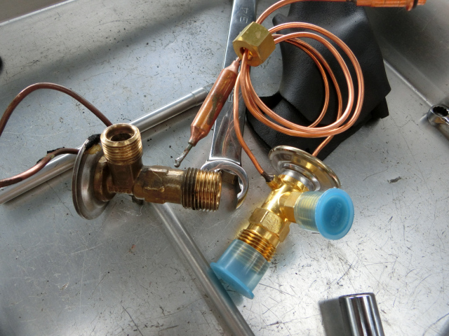 大猫様を冷やします。 この時期に多いのが、クーラー、A/Cの修理。 今日も、ダイムラーのエキパンとレシーバータンクの交換です。 エキパンは、エンジンルームに有るけど、手が入らない!! そして、ガスはR12. 2017.07.08