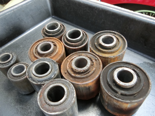 ブッシュ交換。 とても地味な作業ですが、効果はバッチリです。 車は、ランドローバーデスカバリー、車重は、2t もう、20年も走ってるとゴムが劣化してスムーズに アームが動きません、そこで新品に交換です。 新車の走りが蘇ります。 2017.07.22