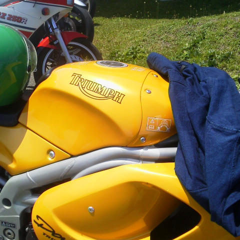 こんにちは、M川です。バイク仲間のトライアンフT595です。 3気筒950cc、わりと珍しいバイクです。
