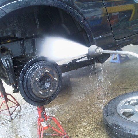 こんにちは、M川です。冬にそなえて下回りのサビ止め塗装です。 ナイスホットで念入りに洗って塗装します。 ナイスコンビです。?