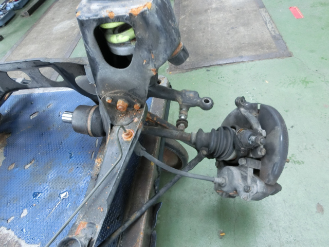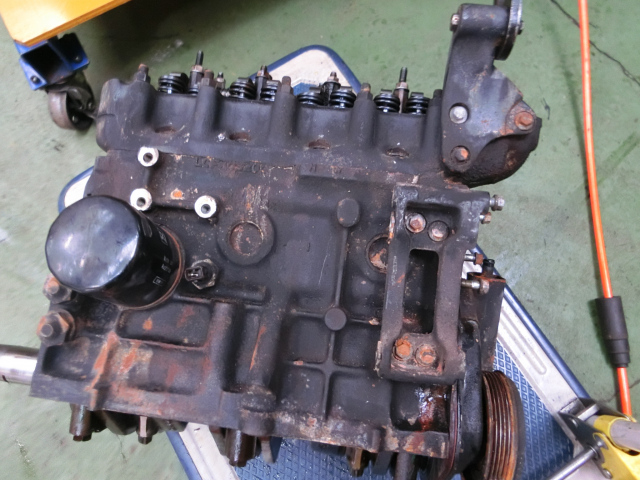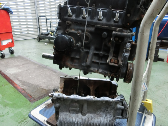 タイヤ交換も一段落です。 Miniのリフレッシュがスタートします。 先ずは、エンジン&ミッションを降ろします。 分解→洗浄等
