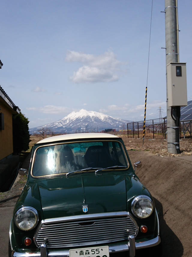 そろそろ桜の便りも聞こえて来ます。 今年の開花は、一週間程早いみたいです。 Miniで、弘前まで引き取りに出かけました。 岩木山が綺麗に映ってます。