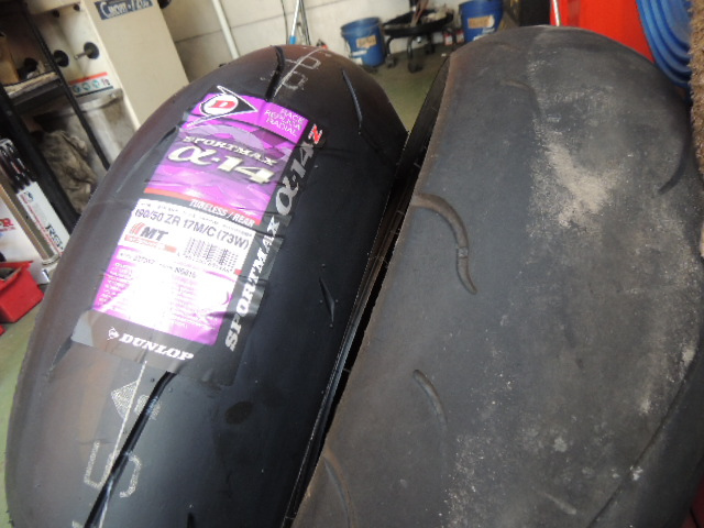 いよいよバイク こんにちは、M川です。いよいよバイクのシーズンが始まります。 今年第一号のタイヤ交換はツーリング仲間のT氏のヤマハFZ-1。 今回は、α14ハイグリップタイヤをチョイスです。 2018.04.11