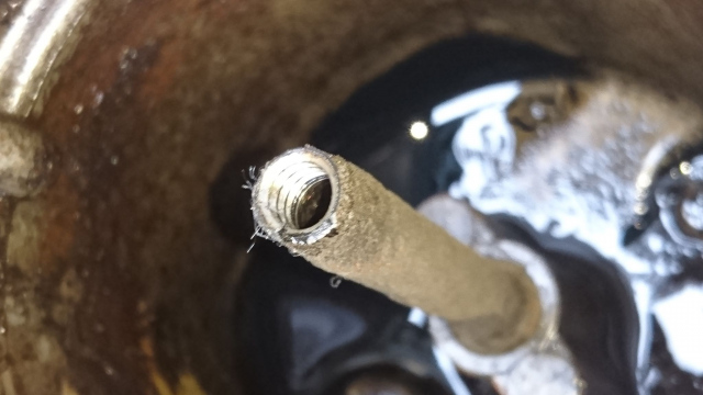開けてみたらビックリ!!良い感じで詰まってます、冬場は凍って燃料がエンジンまで行かないで始動しなくなります。また噴射ポンプにも良くありません。定期的な早めの点検を勧めます。