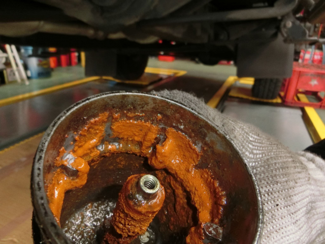 車検で入庫のデフインダーです。燃料タンクのフイルターの間の「セジメンタルフイルター」水抜きです。