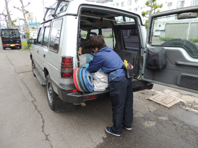 こんにちは、M川です。お得意様のお掃除本舗さんにお願いして 店の大掃除です。ガラスから床までピカピカです。 社用車はディスカバリーを使っています。