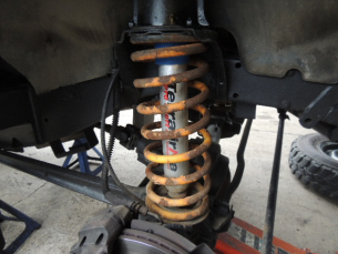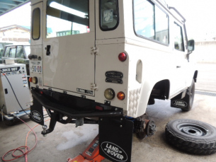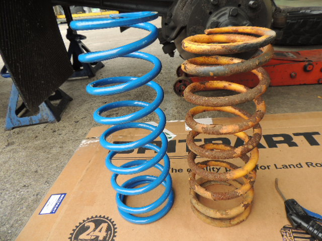 2インチアップ こんにちは、M川です。ディフェンダーに2インチアップのスプリング装着です。 一昔前はこのような作業はちょくちょくありました。 最近はめっきりへりましたね。 ついでにスプリングシートを塩害防止塗料で仕上げます。 2018.07.11