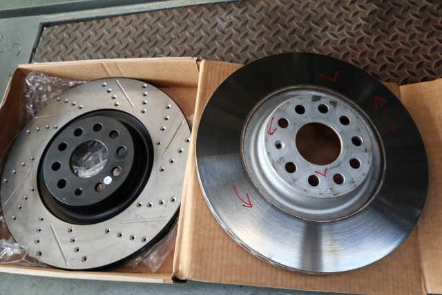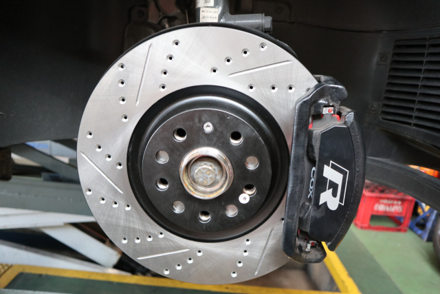 ブレーキローター ゴルフRのブレーキローター交換です、 オリジナルでも効きすぎるくらいですが、 さらにドリルド&スリットローターに交換します。 見た目も大事ですね♪ 310psを止めるには、必要かも! 2018.11.16