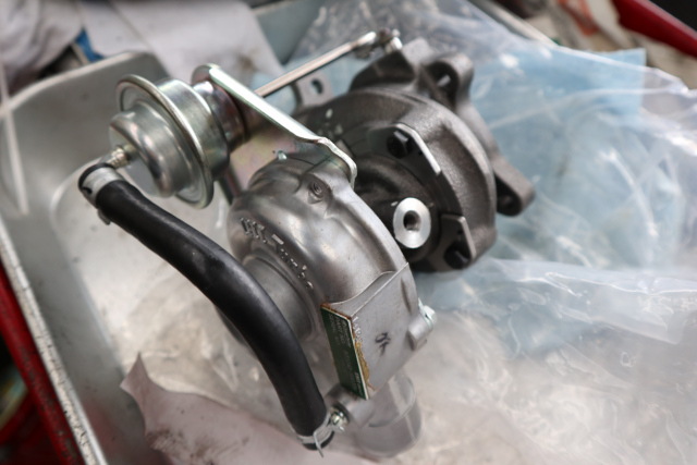 今日は、ミニショベルのタービン交換、ミニでも店の前ではデカいです。