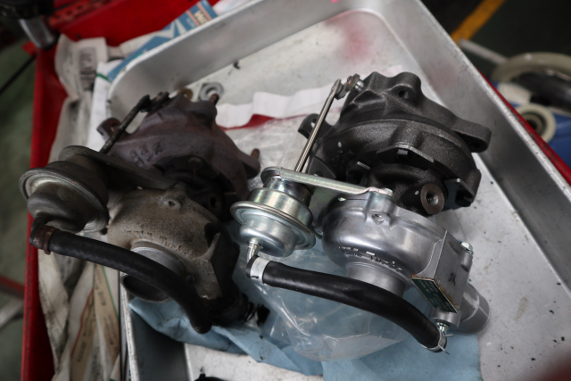 タービンのシャフトにガタが出てエンジンオイルが燃焼してます、