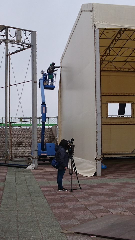 8月のネブタ祭りの準備が始まってました、ネブタの制作の小屋の