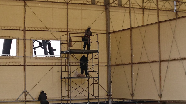 小屋掛けがスタートしてます、小屋と言っても10mX10mの大きさです。