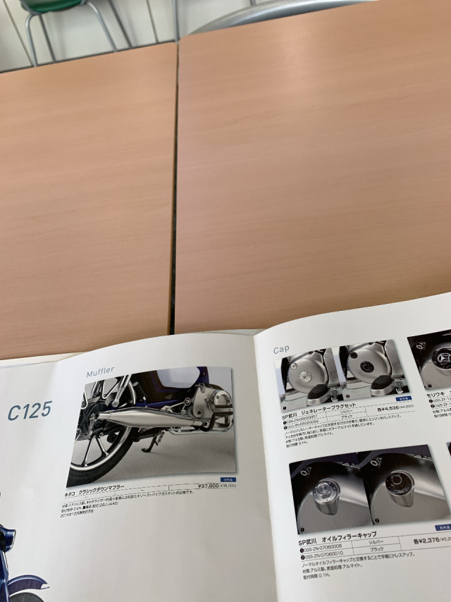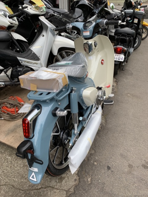 新色のスーパーカブC125が入荷してました。初代C100を彷彿させるカラーリング。