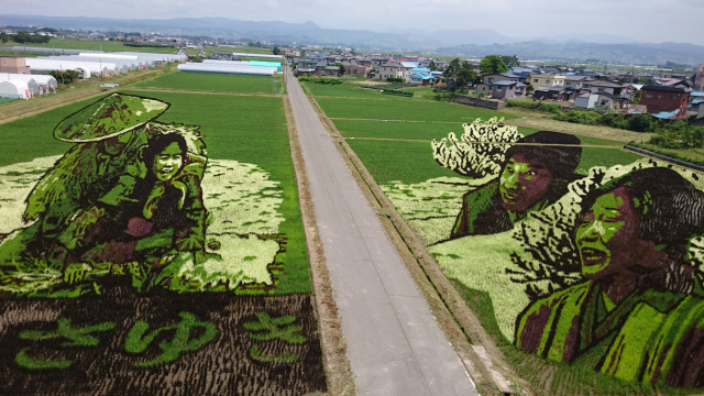 田舎館村で毎年開催してる「田んぼアート」今年は 「おしん」です。 もう、見頃になってます。 10月の刈り取りまで観る事ができますよ♪