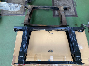 こんにちは三橋です。 お得意様のMini。 そろそろボディを板金と再塗装を計画中、 と、その前に リヤのサブフレームの腐りが酷いので、 こちらを先に交換しました。