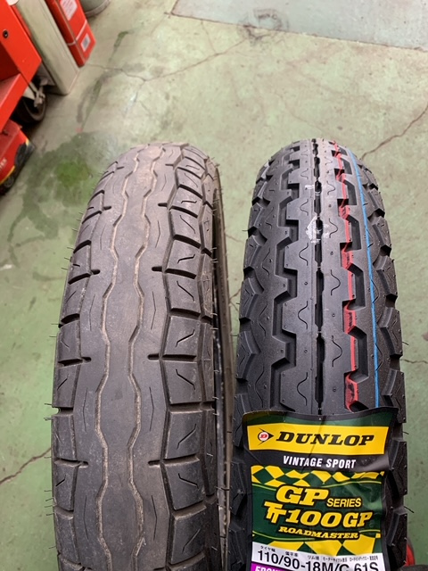 こんにちは、M川です。今年初のバイクのタイヤ交換です。 バイクはホンダGB250クラブマン。 タイヤはやっぱりTT100GPでしょ!
