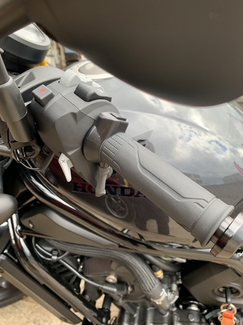 こんにちは、M川です。お得意様のホンダレブル1100DCT(オートマ)です。 オートマなので勿論ですが、クラッチレバー、シフトペダルはありませんね。