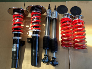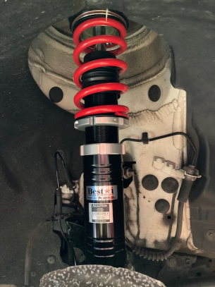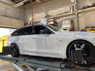 こんにちは三橋です。 F31のBMW。 車高調キットの取り付けです。 メーカー推奨の車高に調整。 なかなかきわどい車高になりました。 仕上げにアライメントで終了です。