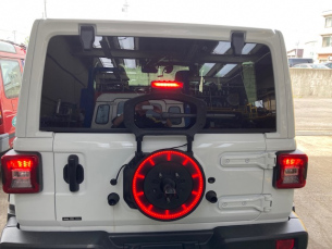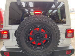 スペアタイヤマウントブレーキランプ こんにちは三橋です。 お得意様のラングラーサハラ。 先日スペアのタイヤホイールを交換しまして、 せっかくタイヤカバーが外れましたので、 ブレーキランプを追加しました。 鮮やかになりますね~ 2021.09.16