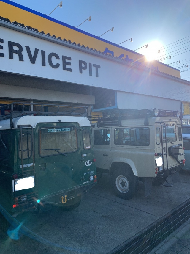 こんにちは、M川です。ミリタリー風味のディフェンダーが2台。 キマります!
