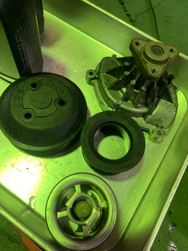 サーモスタット こんにちは、M川です。水温が上がらいポルシェカイエン。 サーモスタットの交換です。 ウォーターポンプの奥に付いているので、そのあたりの部品を 取り外しです。 交換後、無事水温が上がるようになりました。 2022.02.22