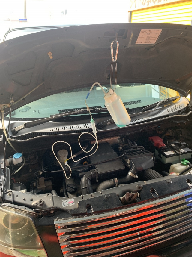 こんにちは、M川です。久々のRECS施工です。 今回は走行10万KmオーバーのスズキワゴンR. 効果の期待が大ですね。