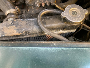 こんにちは三橋です。 代車で使用しているMiniから 冷却水の漏れが発生・・ 長年使用したラジエーターが(コア増し済み)腐食してました・・ 早急に修理します。