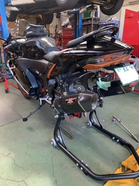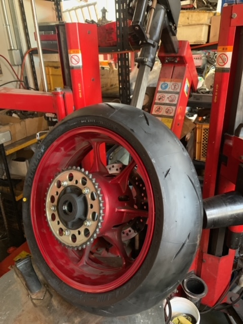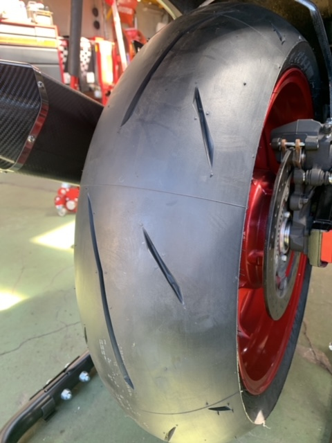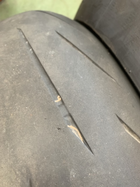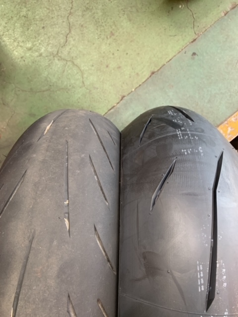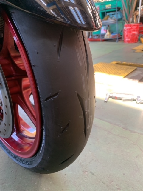 こんにちは、M川です。タイヤ価格値上がり前のタイヤ交換です。 新車装着タイヤは約3000Kmご臨終です。 さすがハイパワーなバイクです。