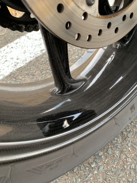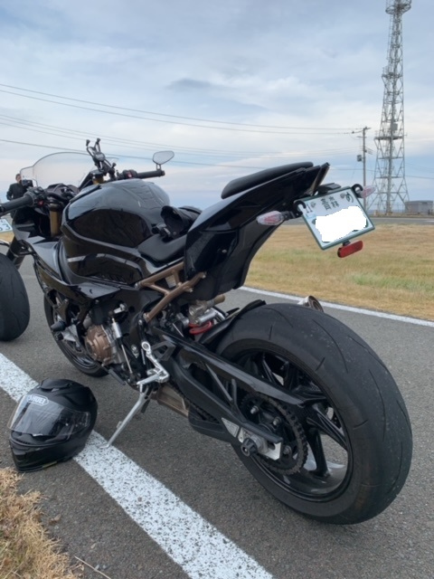 こんにちは、M川です。BMW S1000RRです。200馬力オーバーで 車重200KG切りです。ホイールはカーボン製! 凄すぎます。