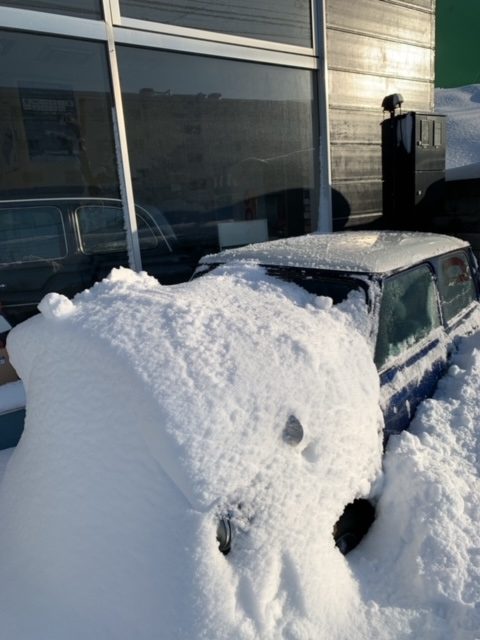 こんにちは、M川です。1月30日(月)朝出勤したら 前の日からの大雪でエライことに。 ミニは車種がわからないくらい積もっています。 まるで遺跡の発掘です。