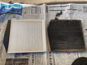 エアコンフィルター。 こんにちは三橋です。 整備でお預かりのボルボ。 エアコンのフィルターを外して見ますと、 かなりの汚れ具合です。 これからは花粉が飛び交う季節でもありますので 定期的にフィルターの交換をおすすめします。 2023.03.16