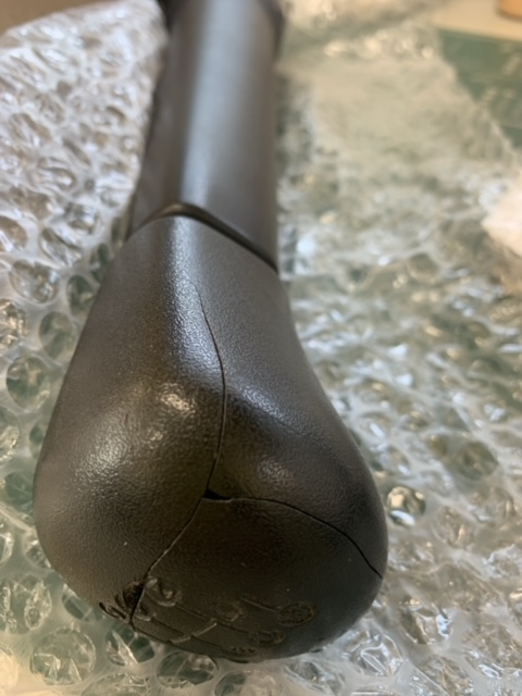 こんにちは、M川です。ディフェンダーTDCIのシフトノブの交換です。 プラの劣化でひび割れしてしまいました。 根元からのアッセンブリー交換になるます。