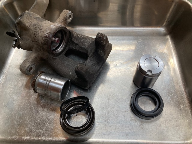 キャリパーのオーバーホール。 こんにちは三橋です。 お得意様のBMWミニ。 リヤブレーキから異音がでて入庫。 キャリパーピストンが固まってましたので、 オーバーホールキットで修理。 ローターとパッドもとりかえて、完了です。 2023.04.13