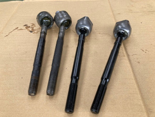 こんにちは三橋です。 ミニのタイロッドがガタガタでございまして、 交換です。 新品は取付け部分が四角くなっていて、 締め付けやすくなっていました。