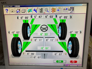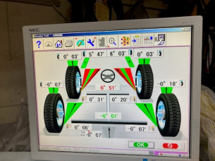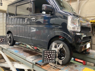 ホイールアライメント こんにちは三橋です。 エブリーのお客様。 1インチ車高を上げてまして、 フロントタイヤの変摩耗で入庫です。 アライメントテスターにかけて測定。 調整して終了です。 2023.11.30