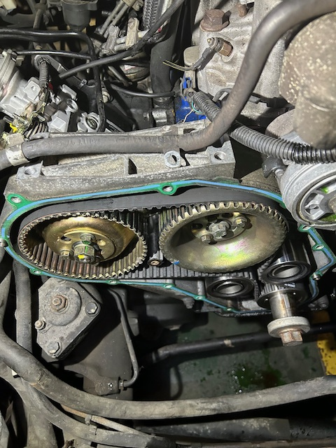 タイミングベルト交換です。こちらのお得意様は1999年に新車で購入され