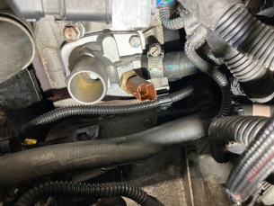 サーモスタット破損。 こんにちは三橋です。 入庫したフィアット500C。 冷却水が入って無いです… 点検してみると、 サーモスタットの樹脂のパイプが破損してました。 新品部品は金属製に対策してあります。 2024.03.07