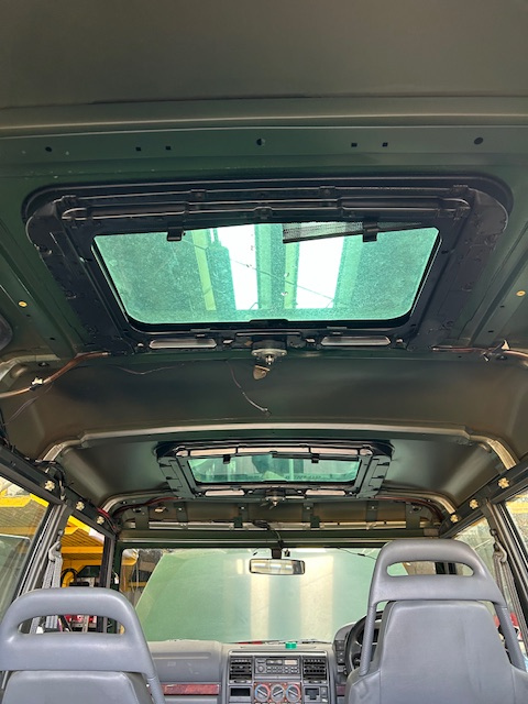 天井張替 こんにちは、M川です。DISCO1の天井(ルーフライニング)張替です。 DISCOに限らず、英車の天井は古くなるとほぼほぼ垂れ下がってきます。 車体から外して張り替えます。 2024.03.19