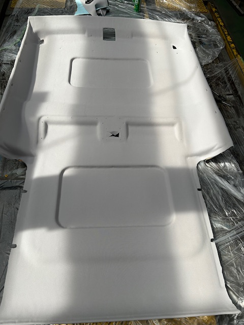 こんにちは、M川です。DISUCO1の天井張替です。 下地を整えて慎重に生地を貼っていきます。 緊張の作業です。