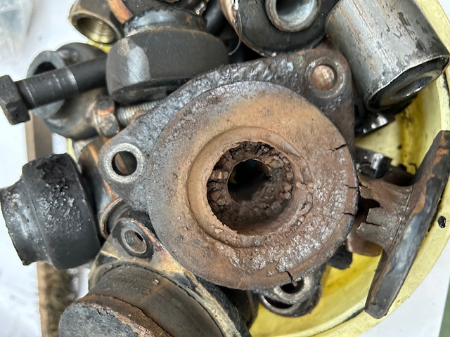 こんにちは、M川です。ディフェンダーの足回りリフレッシュです。 今回は、ボルト類も新品交換です。 ブッシュは見事に朽果ててました。