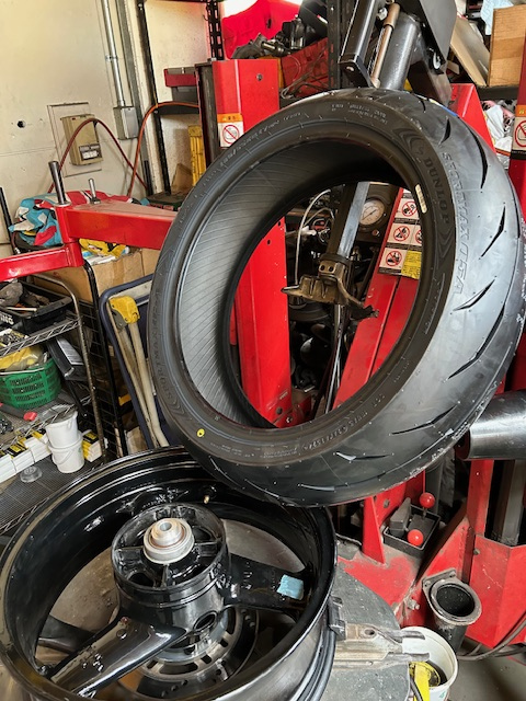こんにちは、M川です。モーターサイクル用。タイヤの新商品のスポーツマックスQ5A。 おかげさまで好評を頂き今シーズン2セット目の販売です。