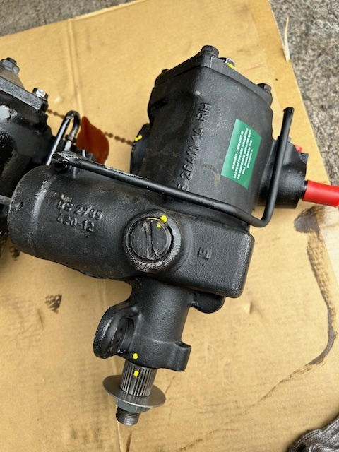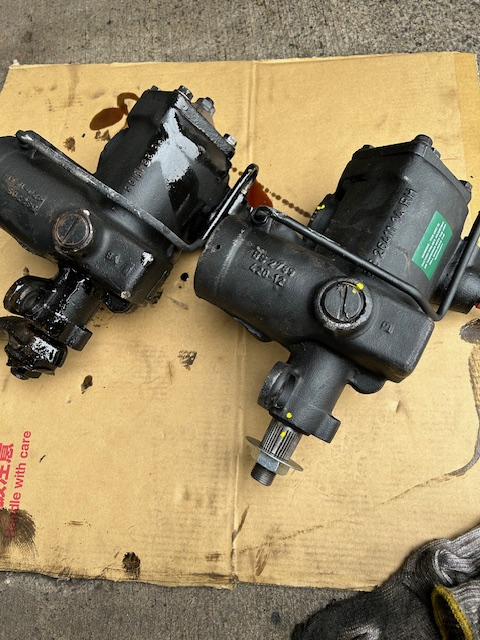 こんにちは、M川です。ステアリングギヤボックスの交換です。 オイル漏れが酷くなってきましたので、リビルト品と交換します。