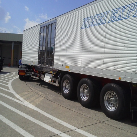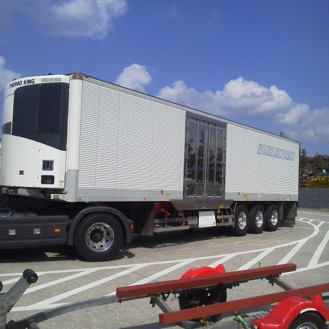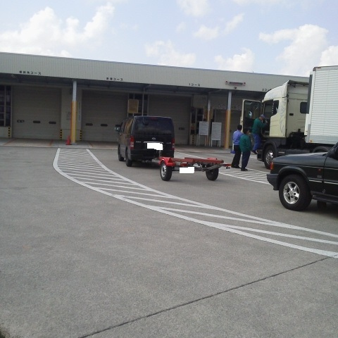 こんにちは、M川です。キャンピングトレーラーの車検です。 他にもボートトレーラーや大迫力の大型トレーラーもありました。