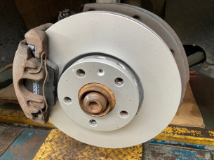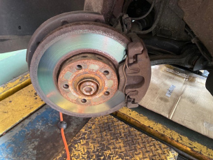 こんにちは三橋です。 友人のアウディ。 もうすぐ車検ですので、 今のうちから消耗品を交換しておきます 本日はフロントのブレーキローター、パッド。