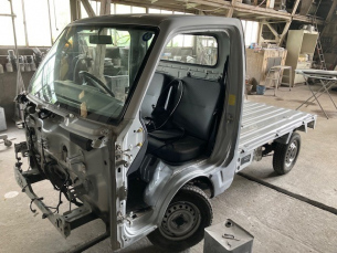 こんにちは三橋です。 お得意様の軽トラック。冬の排雪などに使ってます。 キズやへこみをひと廻り修理の為に板金屋さんへお願いしました。 綺麗に仕上りました。
