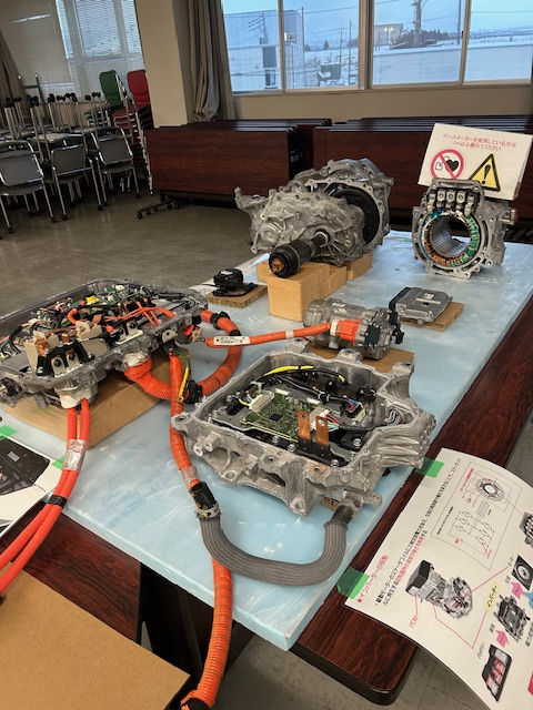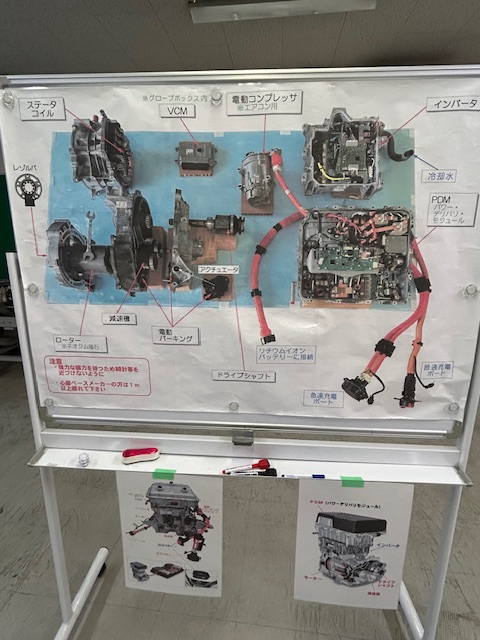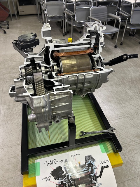 昨年暮れに行われた整備主任研修です。 ニッサンサクラを使って電気自動車のお勉強です。 色々な仕組みに只々おどろきました。